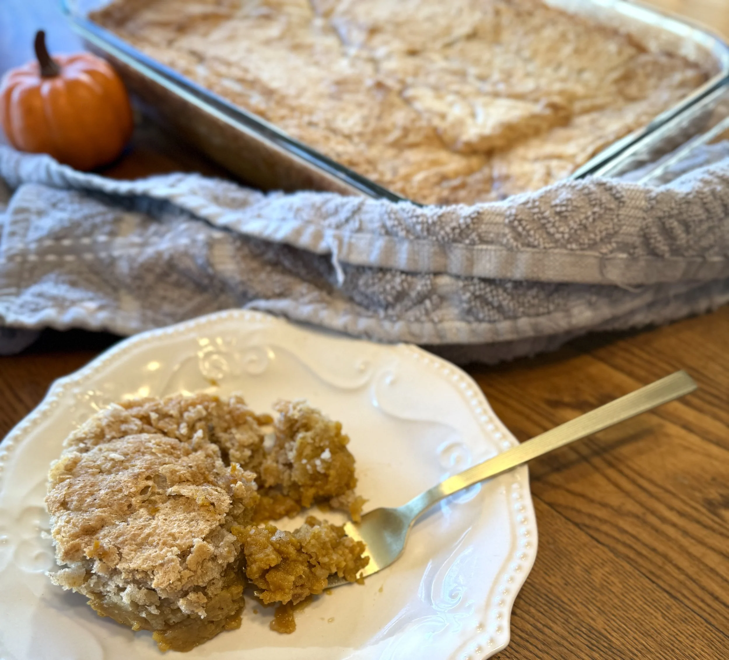 Pumpkin Cobbler fresh from the oven—a true farmhouse favorite for fall!