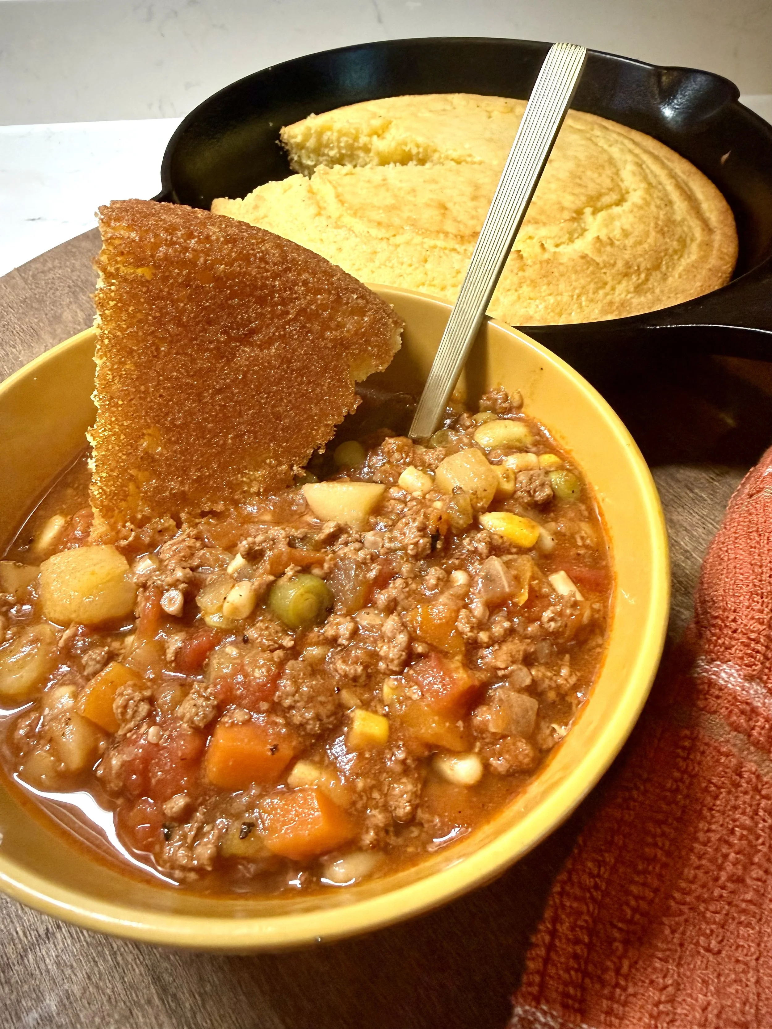 Hearty, homemade, and slow- simmered to perfection—this vegetable beef soup is pure farmhouse Southern comfort in a bowl.