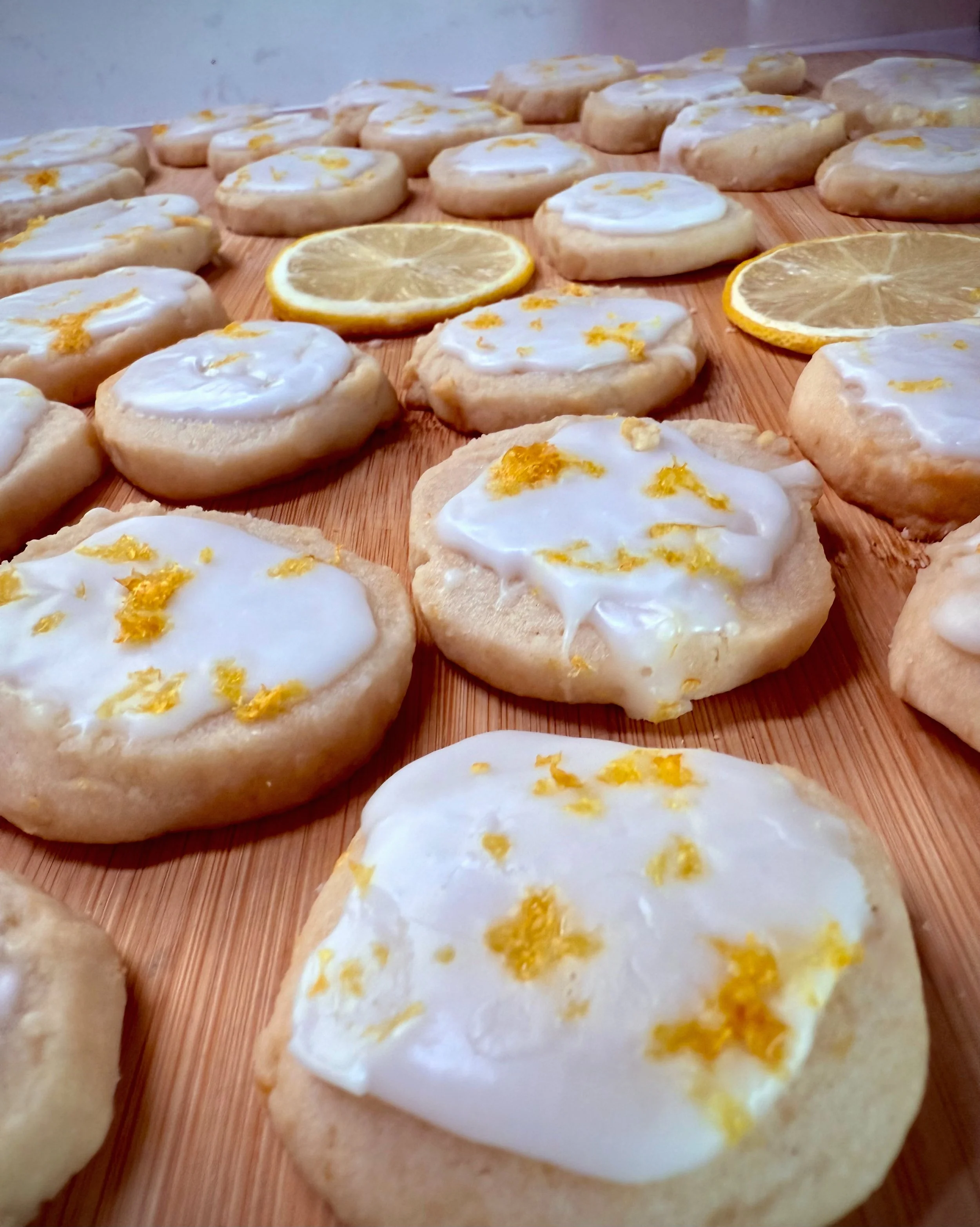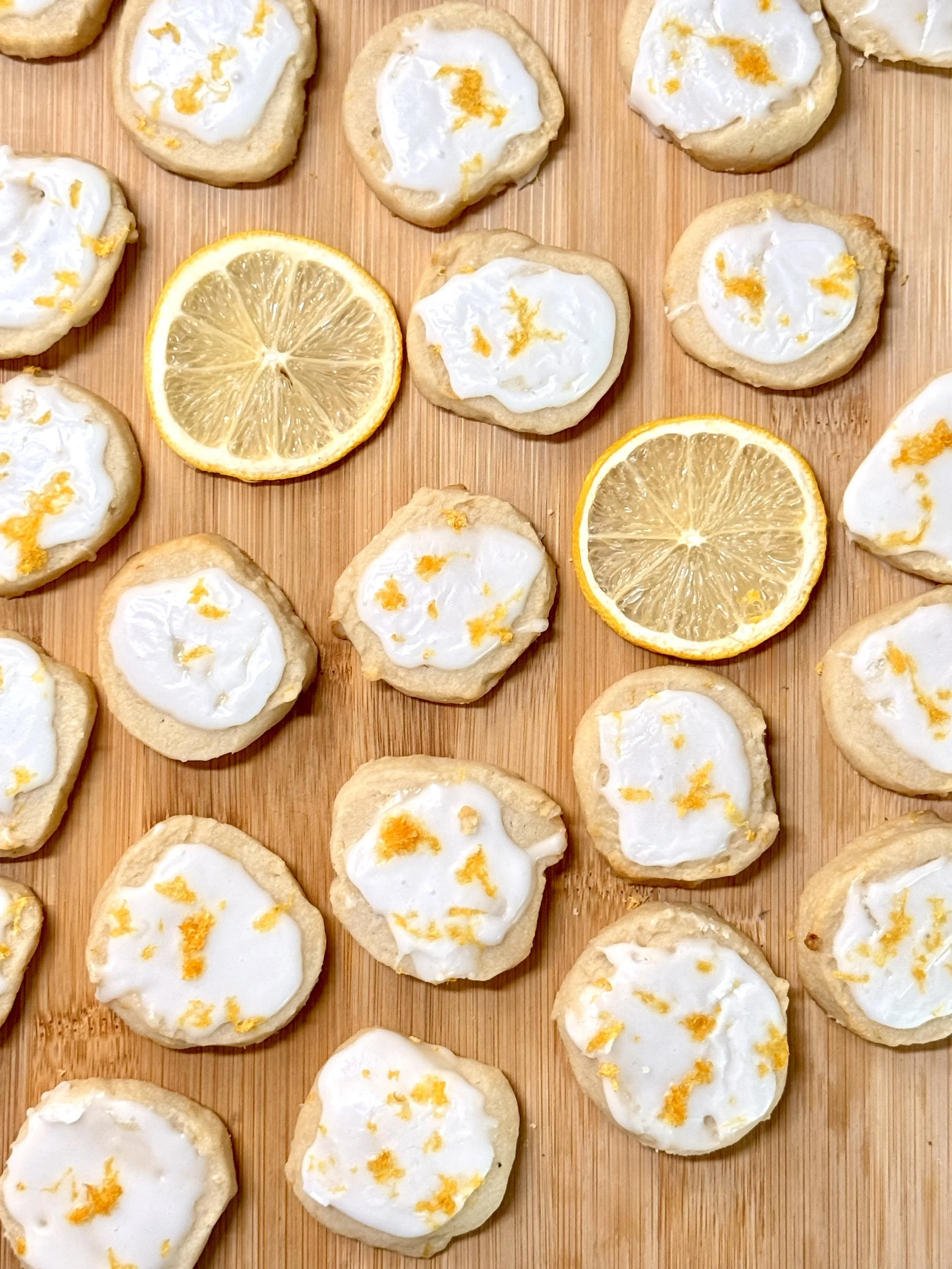 - Whisk powdered sugar with enough lemon juice to make a pourable (or spoonable) glaze. Drizzle over cooled cookies and top with extra zest if desired.