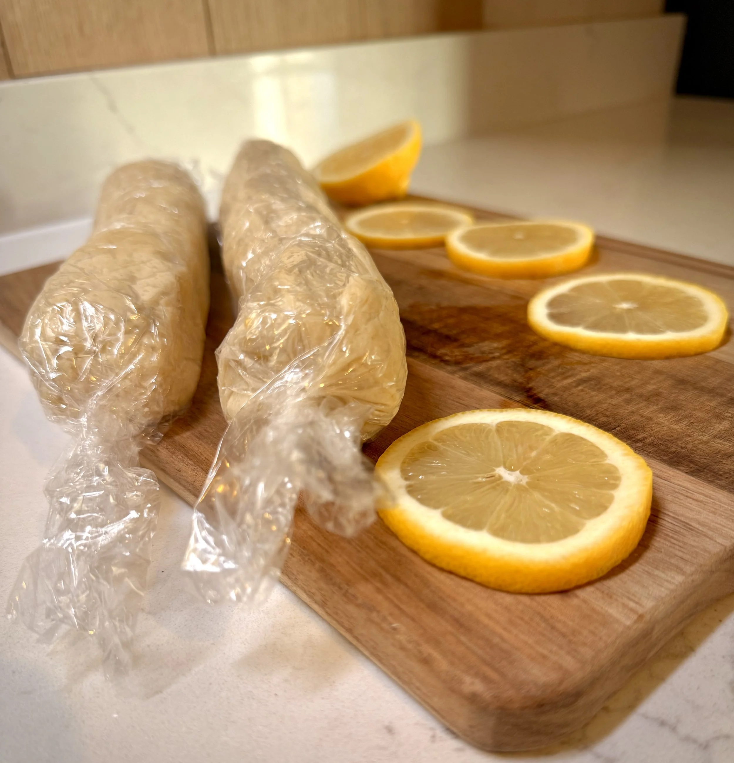 Divide the dough in half and shape each half into a log about 2 inches in diameter. Wrap tightly in plastic wrap and refrigerate for at least 2 hours, or freeze for 30–45 minutes.